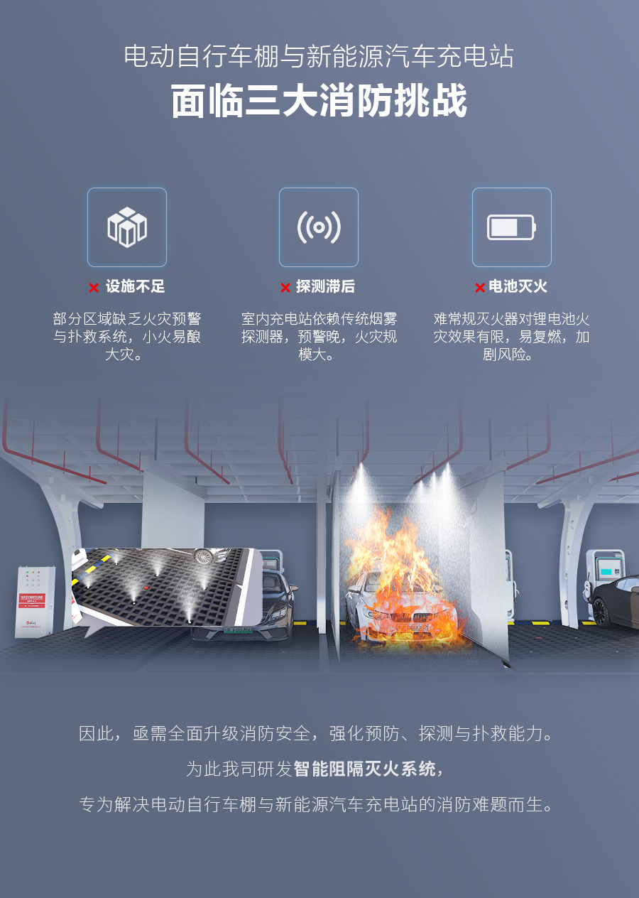 >新能源汽车集中充电场所智能阻隔灭火系统