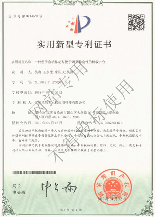 实用新型专利证书